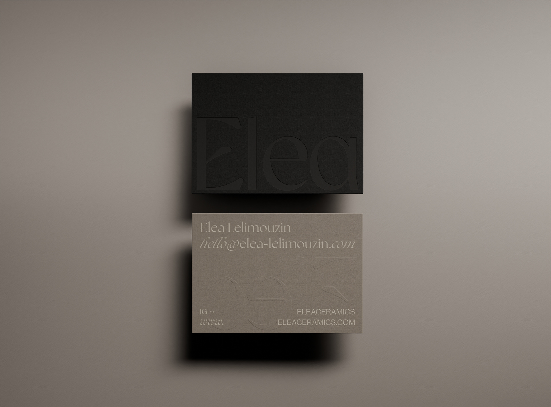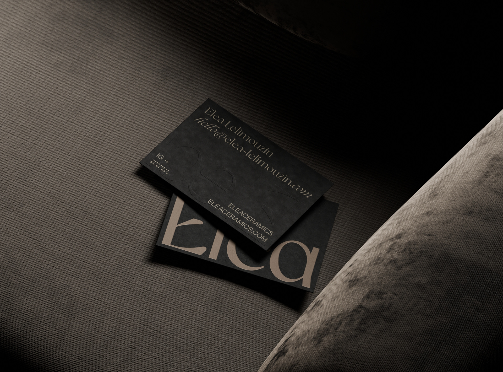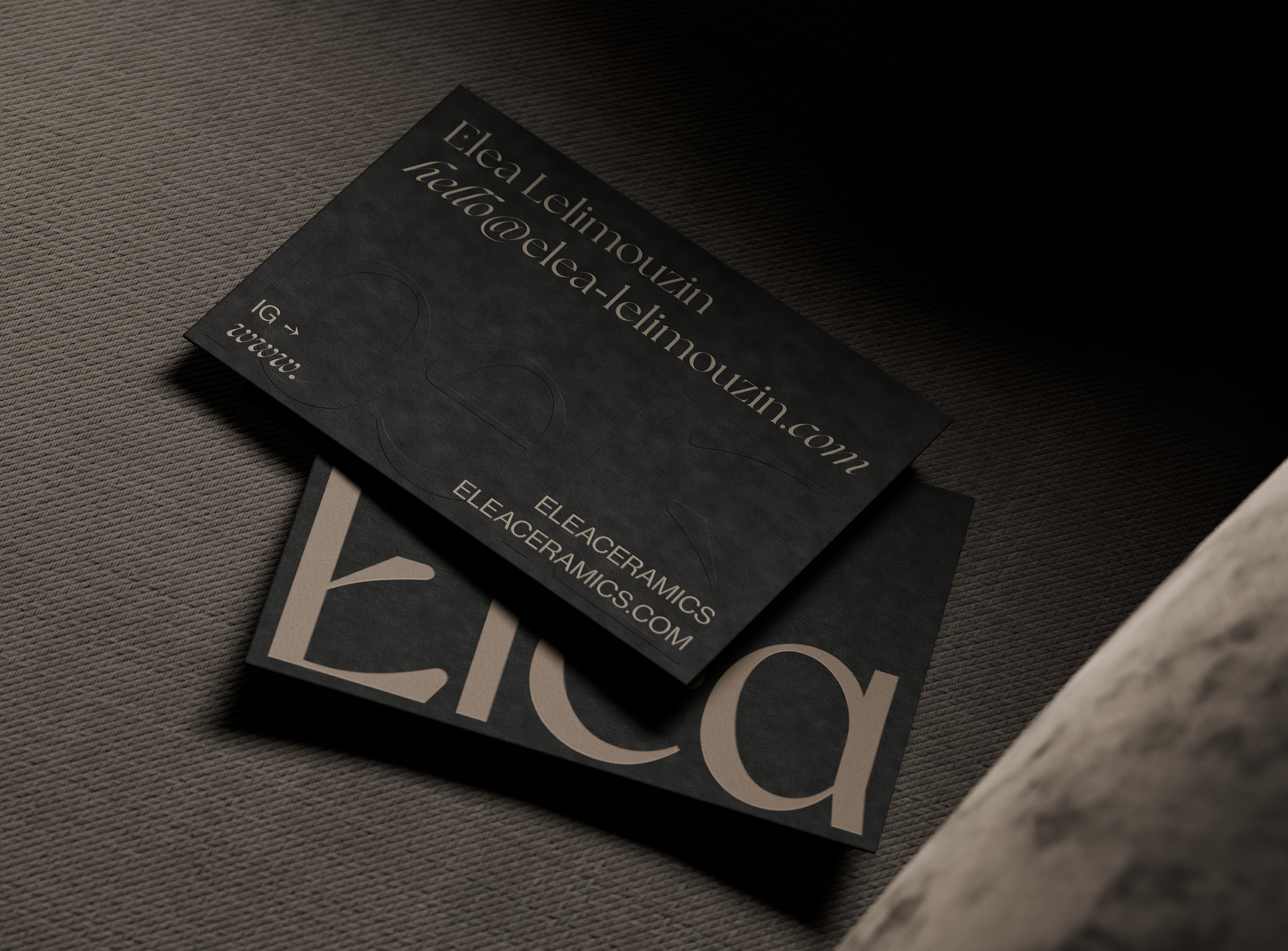 I carefully crafted the studio's identity to reflect the essence and inspiration behind its creations. Through a focus on two nodes, the rustic shades and ash black, along with the inclusion of raw and understated symbols and illustrations, the studio's identity seeks to capture the imperfect and authentic beauty of Elea's work.