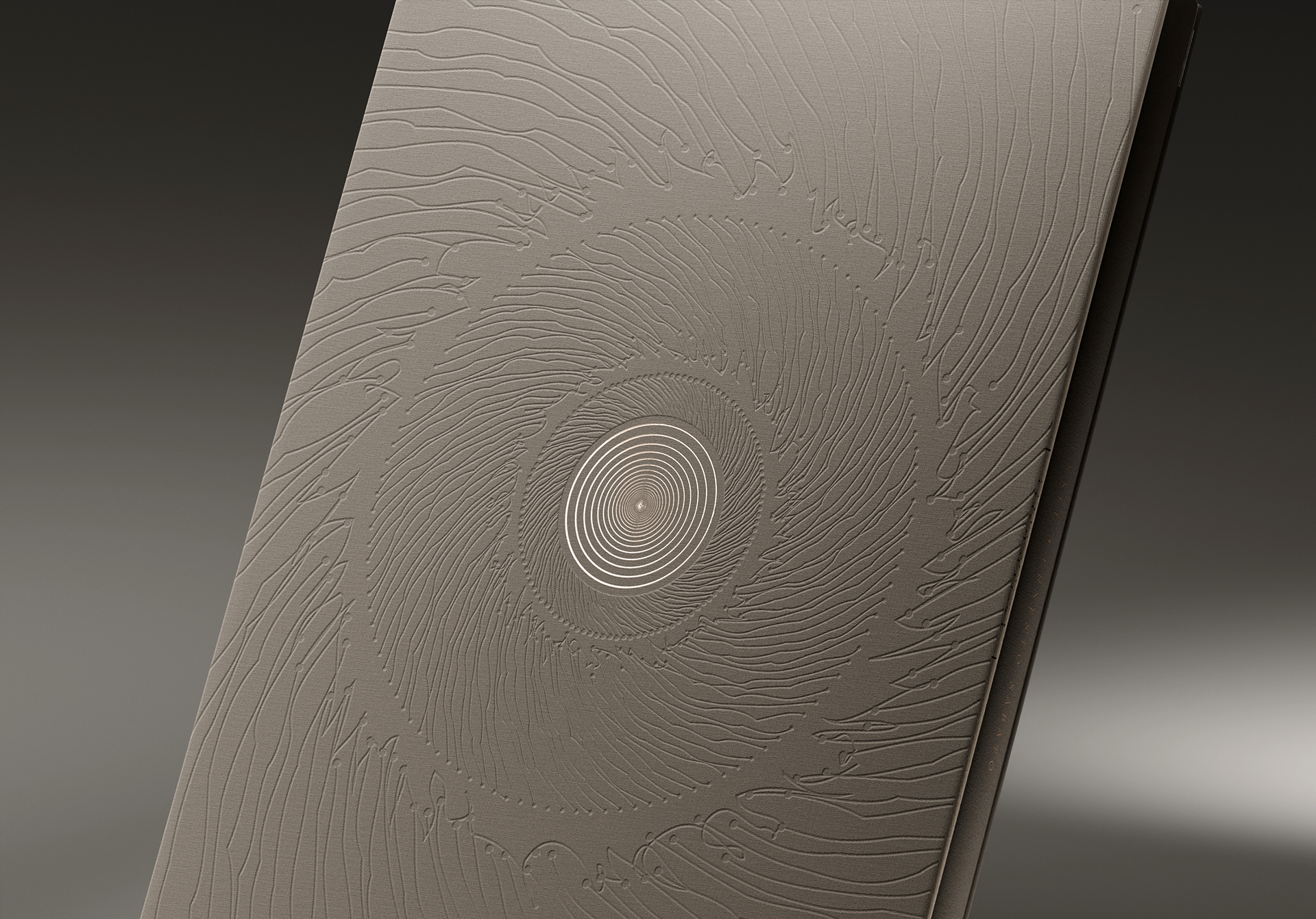 It was decided to use a bas-relief technique for printing the roots, and the typographic elements along with the central symbol were done in embossing, enhancing the texture and visual depth of the design.