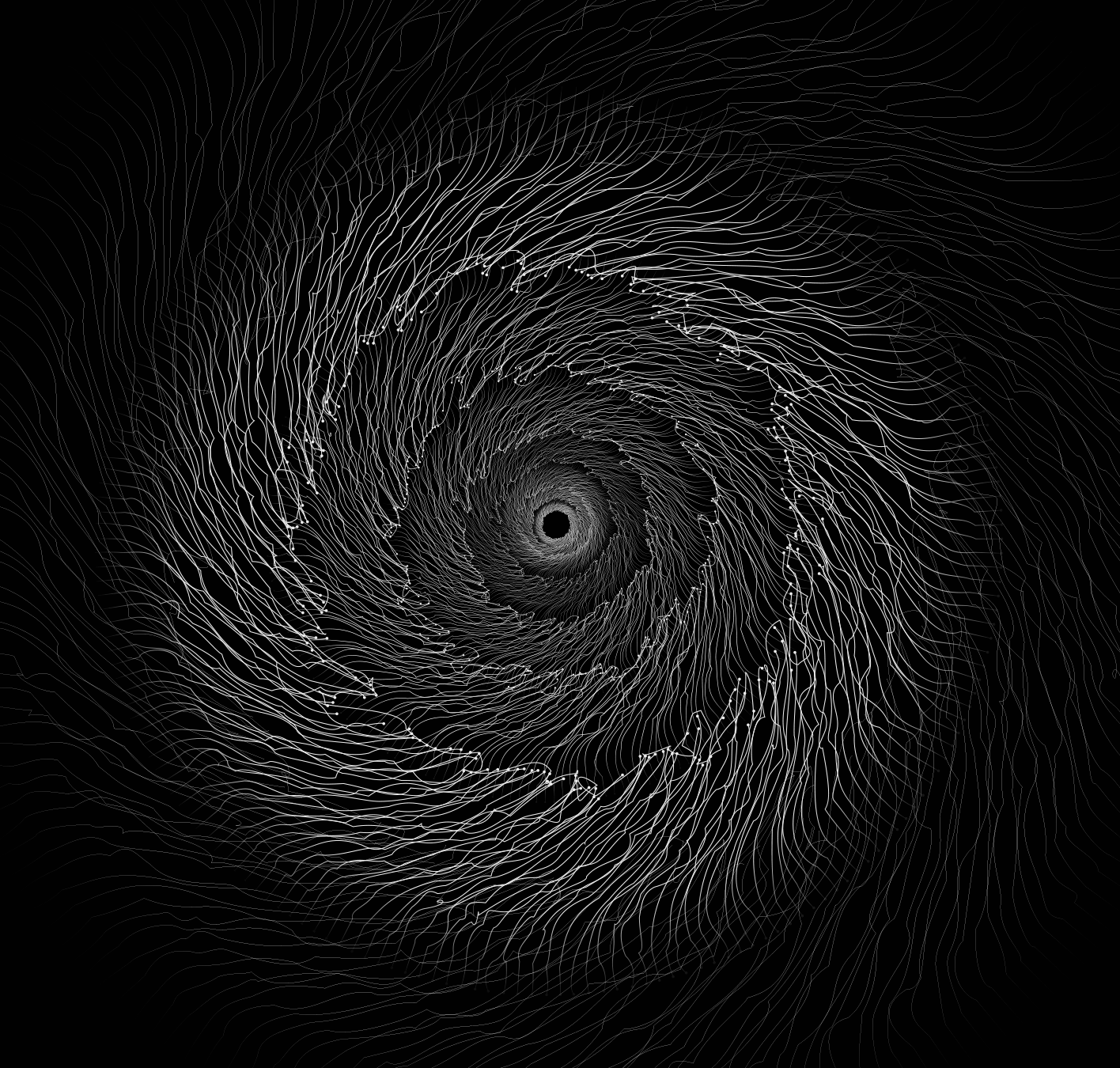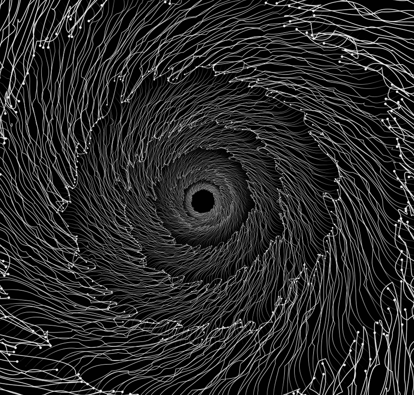 Experimenting with various techniques, I illustrated a series of roots forming a tunnel using vector graphics. I focused on giving them a tremulous and somber character to convey the introspective psychology of the work and its complexity.